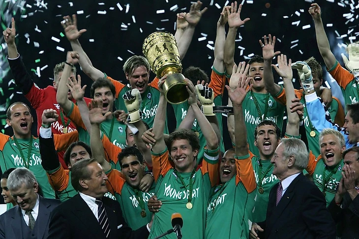 Сказочный сезон «Вердер» увенчал «золотым дублем». В Кубке Германии «бременские музыканты» тоже резвились вовсю. Меньше трёх мячей они не забивали, «Герта» получила в очном матче шесть голов в свои ворота, а любительский «Людвигсфельдер» – все девять! Финал состоялся в самом конце мая, тогда подопечные Шаафа одержали победу над «Алеманией» – главной золушкой того сезона, которая умудрилась добраться до Берлина, будучи командой из второй Бундеслиги. По дороге к финалу аахенцы умудрились обыграть «Баварию». Но бременский орешек расколоть не вышло. «Алемания» сопротивлялась до самого финального свистка, но всё же склонила голову перед командой Шаафа и лично перед Тимом Боровски, оформившим дубль. Итоговый счёт 3:2, и вслед за чемпионским титулом в Бремен отправился и кубок страны.