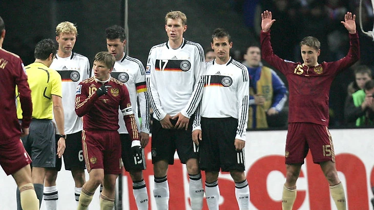 Противостояние России и Германии обычно более распространено в хоккее, а не на футбольных полях. За всю историю с российской сборной немцы играли всего шесть раз, при этом лишь один из этих матчей закончился вничью, а остальные бундестим выиграла, хоть и не без проблем. Неудобным соперником Россию назвать трудно, но даже при этом немцы забили больше двух мячей лишь один раз из всех пяти встреч, что является неплохим достижением, если учесть тот факт, что сборная Германии по именам всегда была сильнее практически всех команд мира.