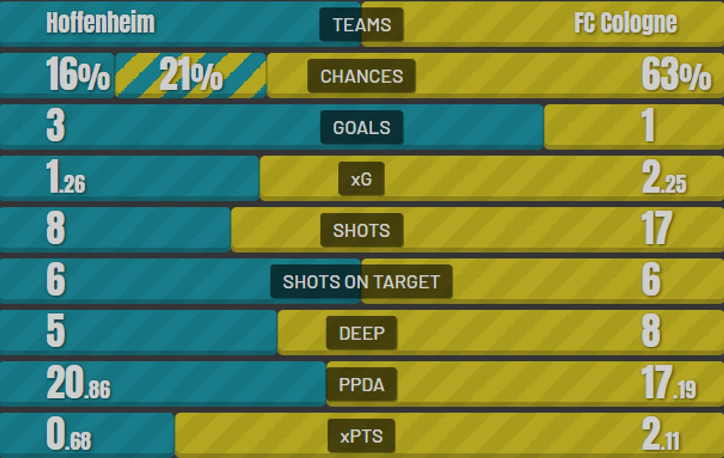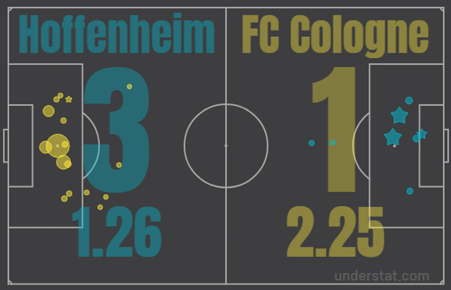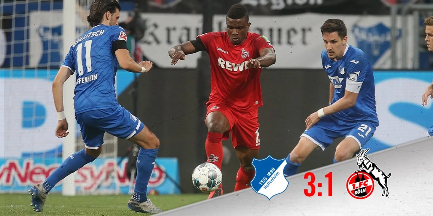«Хоффенхайм», в целом, без проблем переиграл гостей. Почему «в целом»? Ранний гол, а также удаление Себастиана Борнова уже на 26-й минуте сильно расслабило команду. Наверняка у многих телезрителей (с учетом того, что матчи в Германии сейчас нельзя посещать вживую) сложилось впечатление, что хозяева просто потеряли бдительность. Расплата вполне могла случиться в первом тайме, но футболисты из Кельна упустили сразу несколько отличных возможностей. Самое удивительное, что до пропущенного мяча и момента, когда «козлы» остались в меньшинстве, шансов возле ворот соперника у них не было никаких.