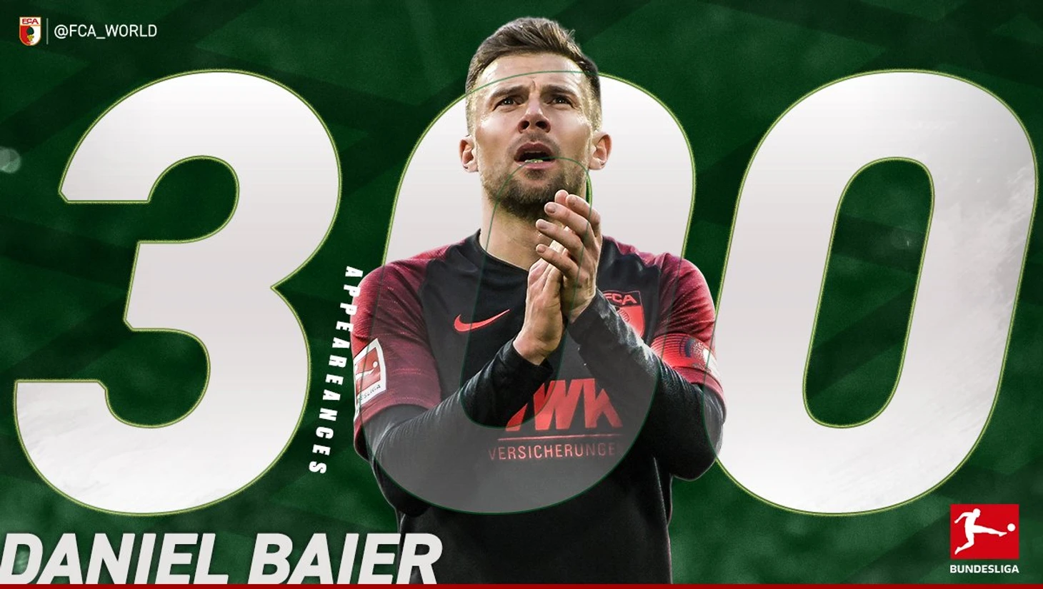 И «Агусбург», и его капитан Даниэль Байер провели в среду свой 300-й матч в Бундеслиге.
