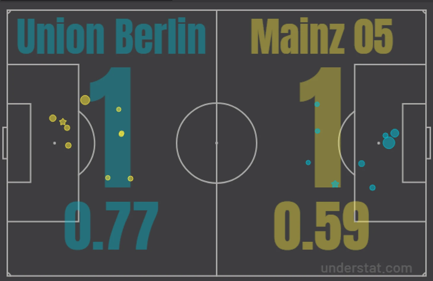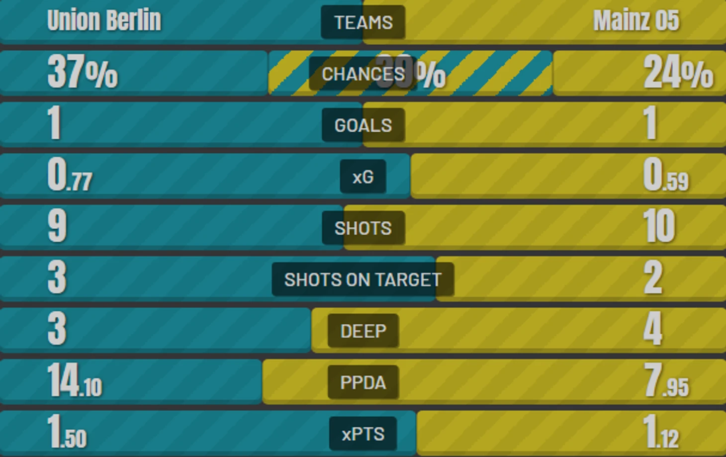 Матч является практически зеркальным отражением предыдущего. Чемпионат постепенно подходит к концу. Все коллективы начинают играть более прицельно, прикидывая, на что они могут рассчитывать. «Унион» и «Майнц» будут определенно довольны сезоном, если не опустятся во вторую Бундеслигу.