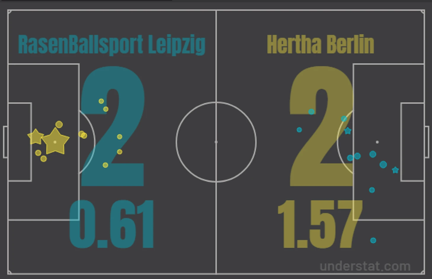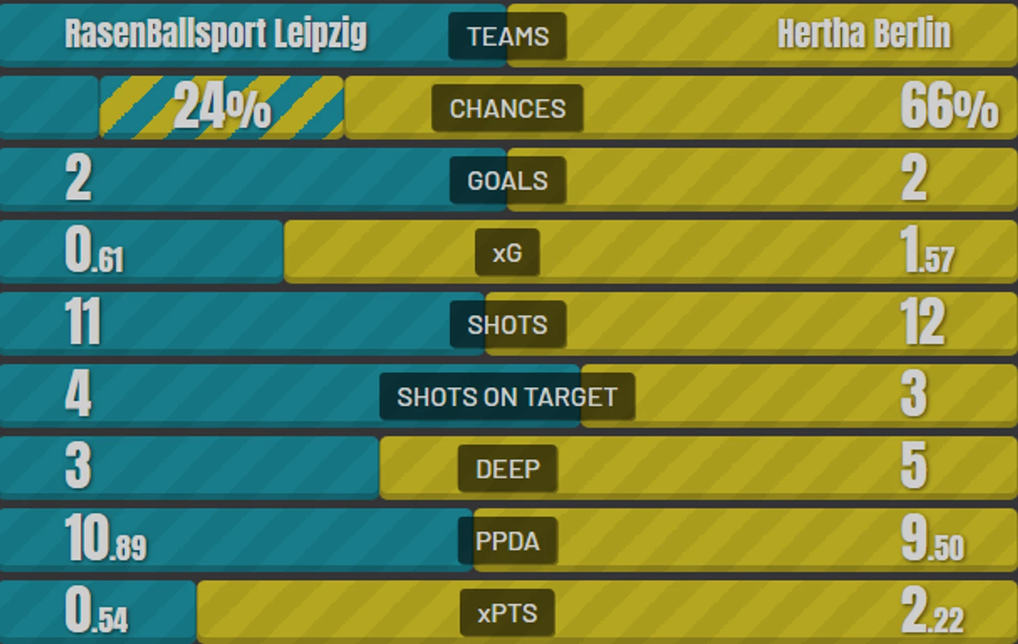 Очень обидную ошибку допустил голкипер «Герты» Руне Ярштайн, который не смог отразить удар Патрика Шика. В итоге он забросил мяч сам себе в ворота, а счет на табло стал 2:1. Новодел из Лейпцига почуял три очка, которые практически свалились с небес. Однако хозяевам предстояло удерживать победный счет вдесятером.