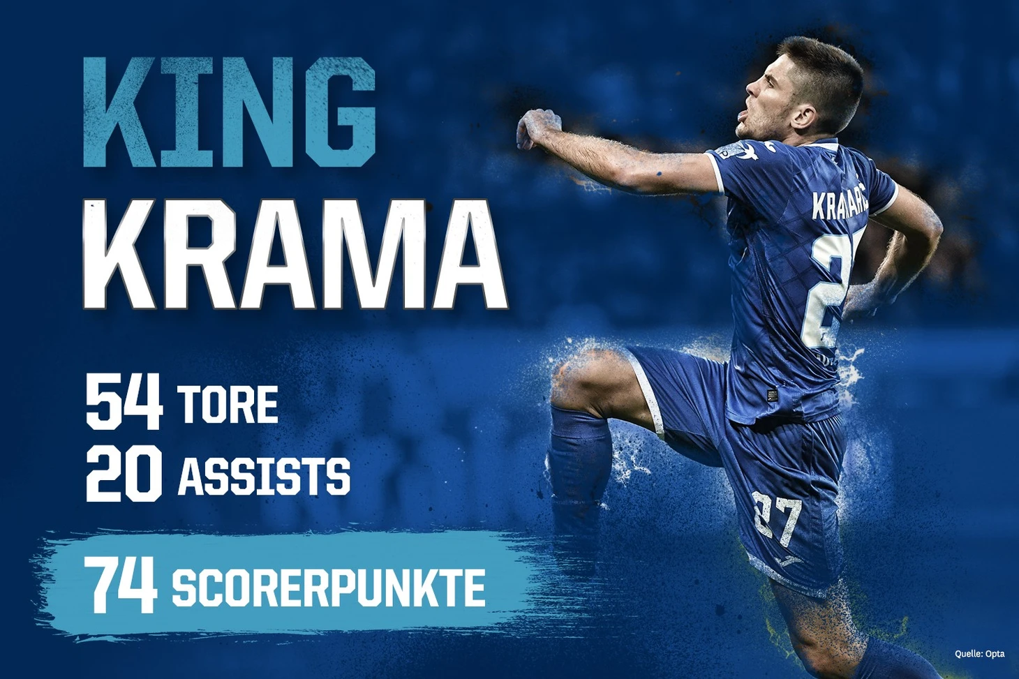 В марте только Роберт Левандовски с 7 мячами будет опережать Крамарича с 6 мячами по показателю результативности в Бундеслиге после зимней паузы.