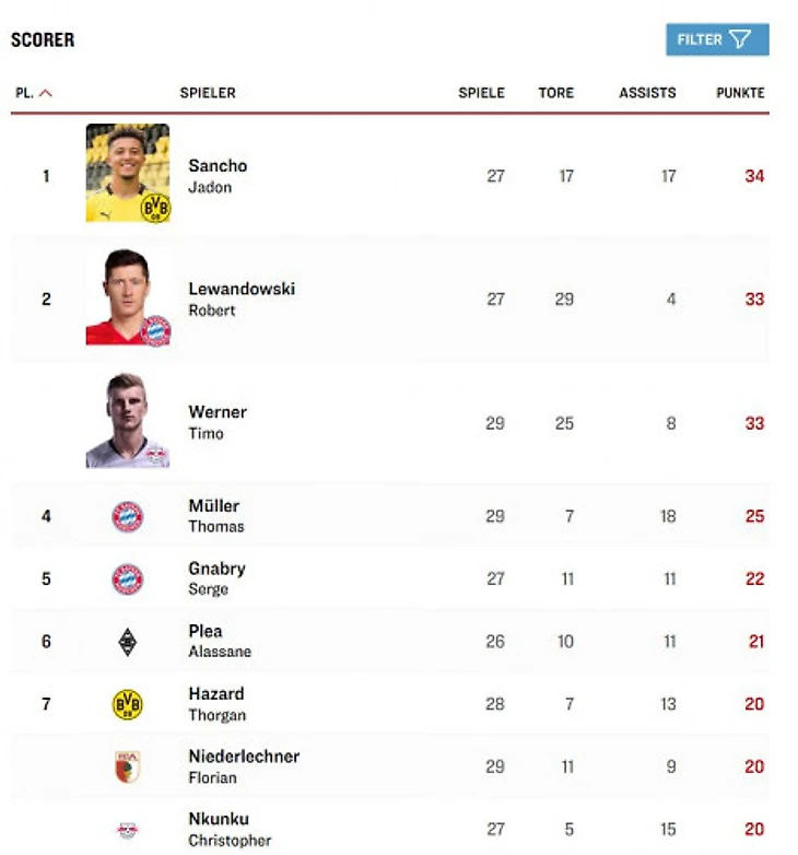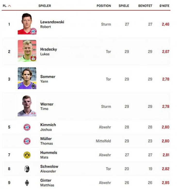 Роберт Левандовски вышел на первое место в списке лучших бомбардиров топ-5 европейских лиг текущего сезона. Он также является первым игроком страше 30 лет, который забил 29 голов в одном сезоне Бундеслиге. Теперь он забивал хоть раз каждому из 18 клубов Бундеслиги этого сезона.