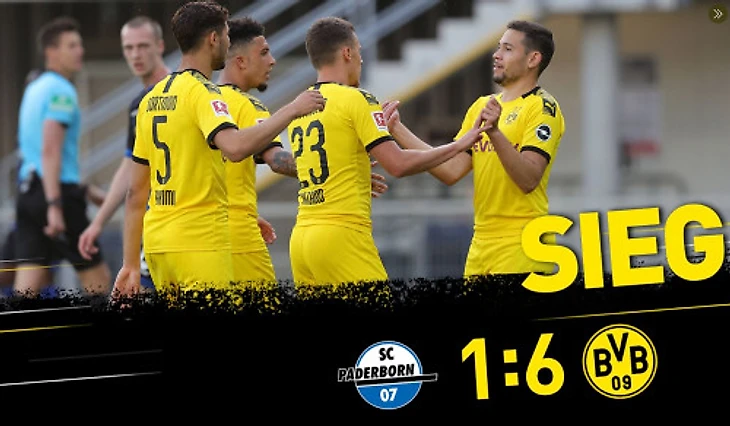 В данном туре у гостей отсутствовал на поле Эрдинг Холанд, он получил травму ноги и не смог принять участие в этой встрече. Но на роль главного забивающего игрока вызвался Джейдон Санчо, оформивший хет-трик. С небольшим интервалом игроки «Боруссии» атаковали ворота «Падерборна» и делали счет все более разгромным. Даже реализованный Уве Хунемайером пенальти, назначенный в ворота гостей, не спас хозяев от разгрома.