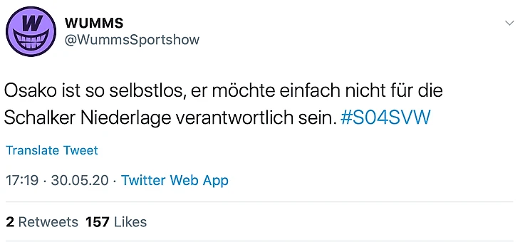 Осако настолько самоотверженный, что не хочет быть ответственным за поражение Шальке.