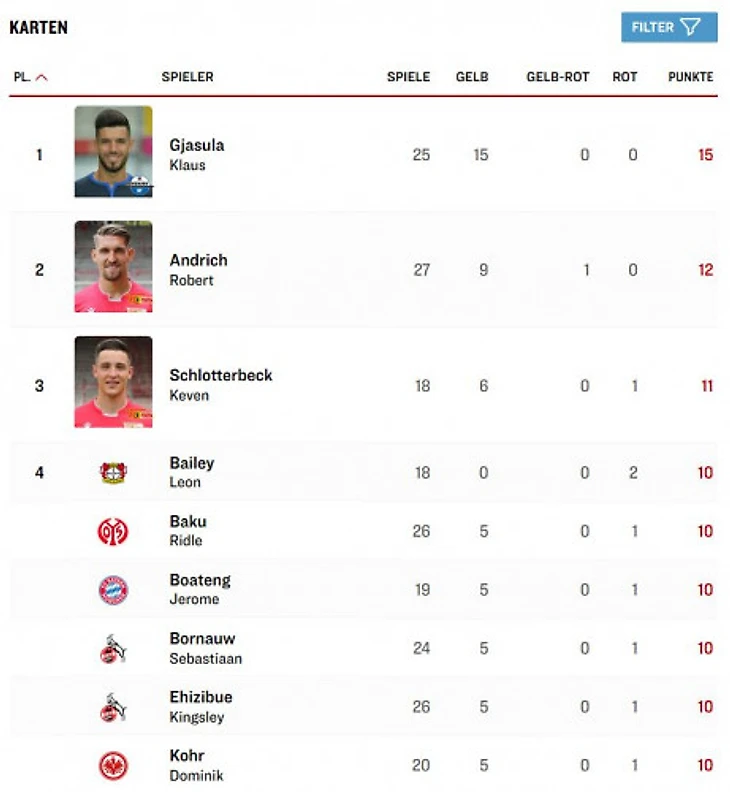 В первом тайме было показано семь жёлтых карточек — это рекорд лиги. Столько же карточек было показано за первую половину матча в последний раз в ноябре 2014 во встрече между «Гамбургом» и «Байером».