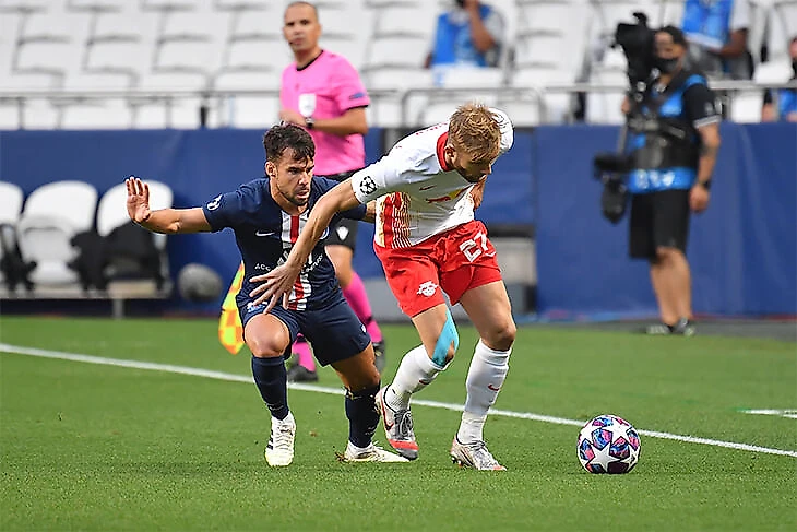 В «ПСЖ» у нападающих такой тотальной свободы нет. Да, иногда Неймар и Мбаппе могут встать после потери, однако это происходит не так часто. Но – что самое главное – когда соперник разыгрывает мяч от своих ворот французы прессингуют, причем их нападающие принимают в этом активное участие. За счет давления впереди команда Тухеля во многом и победила «Лейпциг».