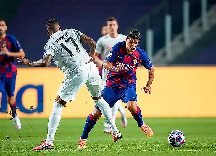В 1/4 мы увидели, насколько грозной может быть «Бавария» в матче против разбитой команды, в которой не все игроки работают без мяча. У «Барселоны» в обороне не принимает участие не только Месси, но еще и Суарес – это сильно бьет по надежности каталонской защиты. Из-за пассивности нападающих «Барса» уже давно отказалась от высокого прессинга – это не позволяет ей территориально доминировать в больших матчах (об этом мы писали в превью четвертьфинала). Кроме того, нет и контрпрессинга – после потери звезды сине-гранатовых выключаются, давая сопернику спокойно выходить из-под давления и организовывать быстрые контратаки.