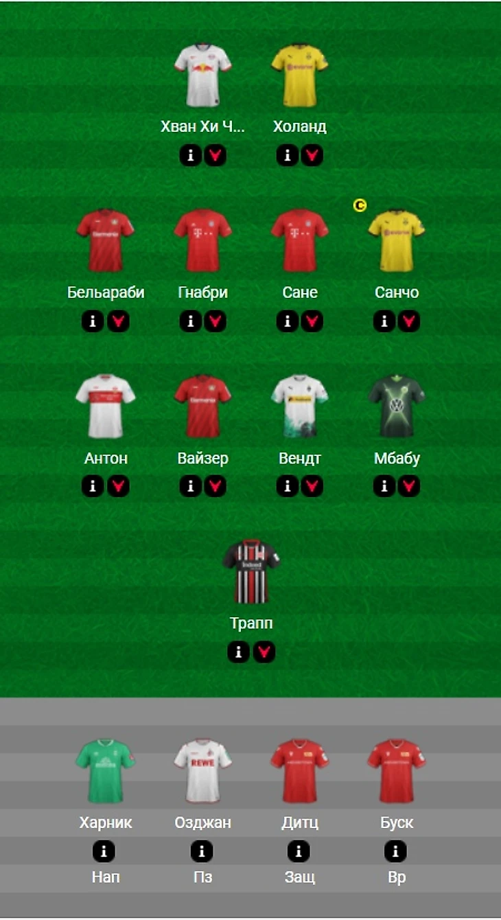 Здесь вам и упомянутые выше Трапп в дуэте с Буском. И дуо Хван плюс Холланд. Полузащита стандартна и крепка, пожалуй, на весь сезон кроме Бельараби. Оборона тоже без сюрпризов и почти полностью собрана из предложенного списка выше.