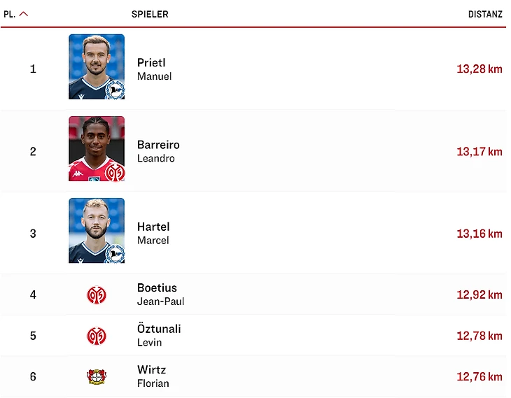 *игрок – кол-во игр – кол-во минут – в среднем км за 90 мин – всего км