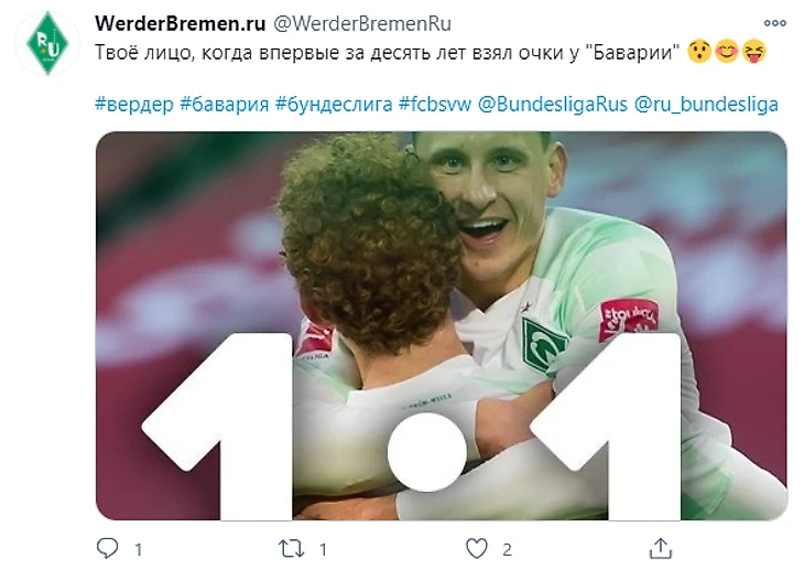 1 – Кингсли Коман забил свой первый гол в сезоне Бундеслиги в матче, который закончился вничью 1:1 против «Вердера». Как и в финале Лиги чемпионов против «ПСЖ», француз забил «музыкантам» головой, причем из почти идентичной позиции.