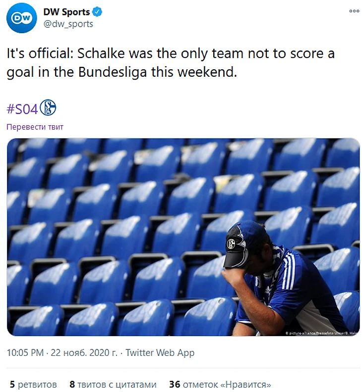 «Шальке» единственная команда в 8-м туре Бундеслиги не сумевшая забить гол.