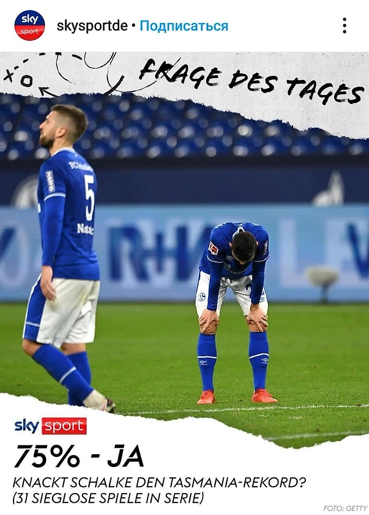 Sky Sport провел опрос и оказалось, что 75% его участников уверены, что «Шальке» побьет рекорд «Тасмании».