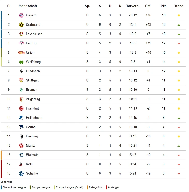 «Байер», напротив, запрягал долго (три ничьи), зато потом были одни победы. Состав с прошлого года не стал сильнее, но Бошу, кажется, удалось найти подход к игрокам и «аспириновые» сейчас выглядят довольно уверенно.