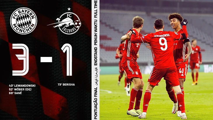 Несмотря на итоговый результат игра для мюнхенцев не была такой уж простой. Счет в матче был открыт лишь на 42-й минуте. Роберт Левандовски в штрафной сделал прострел на Мюллера, Станкович отразил удар Томаса, но на добивании оказался все тот же Левандовски, заметивший пустой угол ворот «Зальцбурга» и открыл счет. Австрийцы, справедливости ради, имели гораздо больше возможностей открыть счет, да и вовсе выиграть первый тайм, но шикарные сэйвы Нойера + немного везения и мюнхенцы забирают первый тайм себе в копилку.