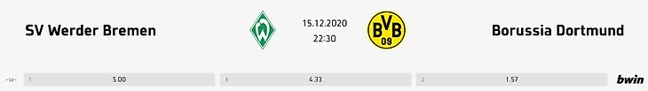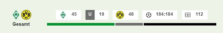 Хорошая статистика: «Боруссия» Дортмунд лишь однажды проиграла «Вердеру» в прошлых 11 матчах – в декабре 2017 дома с счетом 1:2. Помимо этого матча, «Дортмунд» одержал семь побед над бременцами и сыграл с ними три раза вничью.
