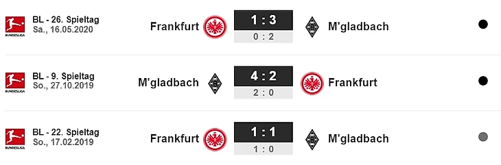 «Мёнхенгладбах» не проигрывает «Франкфурту» уже четыре последних встречи в Бундеслиге (три победы, одна ничья).