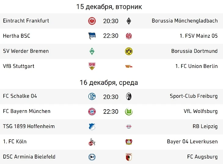 Превью 12-го тура немецкой Бундеслиги