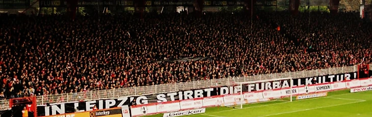 Уточнение: во фрагменте про «Динамо» Дрезден вспоминается нашумевший перф с аллюзией на смерть футбола, направленный против РБ Лейпциг и возникает небольшая путаница с тем, кто же его делал. Так вот: это дело рук «Униона», а Дрезден, в свою очередь, бесхитростно кинул на поле отрезанную голову быка. Выводы, как говорится, делайте сами.