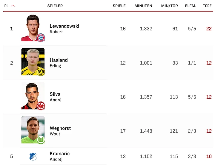 5 – Мэттью Хопп из «Шальке 04» забил в матче против «Кёльна», отличившись в третьей игре подряд. Как и Роберт Левандовски, он забил пять голов – это наибольшее количество голов в 2021 календарном году в чемпионате.
