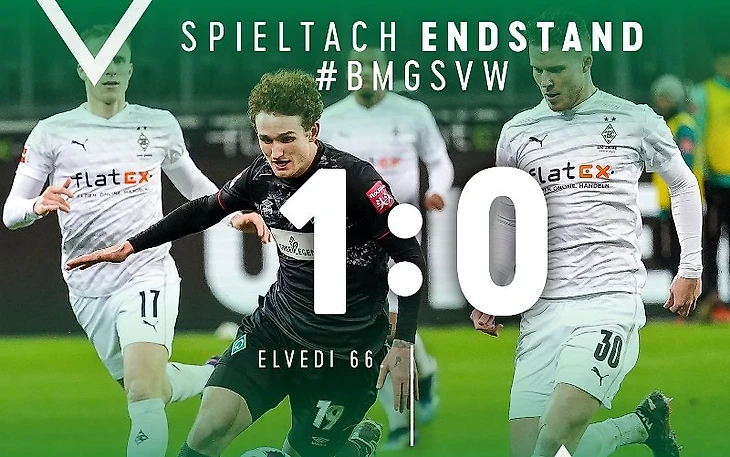 Во втором тайме «Вердер» начал действовать намного активнее, но счёт в матче всё же открыли хозяева. На 66-й минуте Бенеш классно навесил со штрафного, а Эльведи обыграл всех защитников «Вердера» и в падении пробил в правый угол ворот, открыв счёт в матче. Через четыре минуты на этот раз у Бенеша появился шанс забить, но защитник блокировал удар словака. У «Вердера» почти получилось сравнять счёт на 88-у минуте, но Рашица попал в штангу, а не в правый угол ворот, как планировал. Игра закончилась невзрачной, но очень нужной сейчас победой «Боруссии», «Вердер» сильно не расстраивается и начинает готовиться к предстоящему выезду в столицу на матч с «Гертой».
