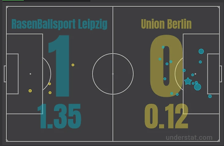Нынешний «Унион» наводит ужас на все клубы Бундеслиги, и даже топовые команды с осторожностью подходят к матчам с берлинцами, поэтому от игры в Лейпциге только далёкие от чемпионата Германии люди ожидали лёгкой победы «быков». Весь первый тайм «Лейпциг» тщетно пытался забить. Уже на 6-й минуте Забитцер пробил по воротам с края штрафной, но Луте смог парировать удар. На 15-й минуте Ингвартсен мог забивать, но ударил слишком высоко. В первые сорок пять минут «Лейпциг» практически всегда был в атаке, но «Унион» каждый раз умудрялся спасти ситуацию. Отдельно стоит отметить Луте, который не раз выручал команду, оставляя ворота сухими.