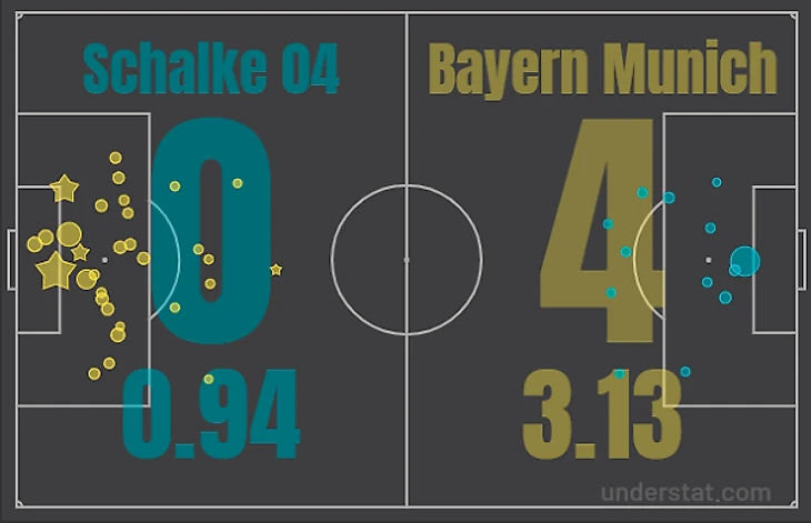 Хозяева провели неплохой по своим меркам матч против мюнхенцев, но уж слишком недосягаем класс немецкого чемпиона. Нередко нам доводилось видеть в деле Мануэля Нойера, который отразил опаснейший удар Беккера на первых минутах. Игроки «Шальке» выбегали в опасные контратаки, но их подводила реализация. А вот у кого с реализацией все было в порядке, так это у гостей. Мюллер оформил дубль с передач Киммиха, очередной гол забил Левандовски, а Алаба вновь напомнил о себе, забив потрясающим лонг-шотом.