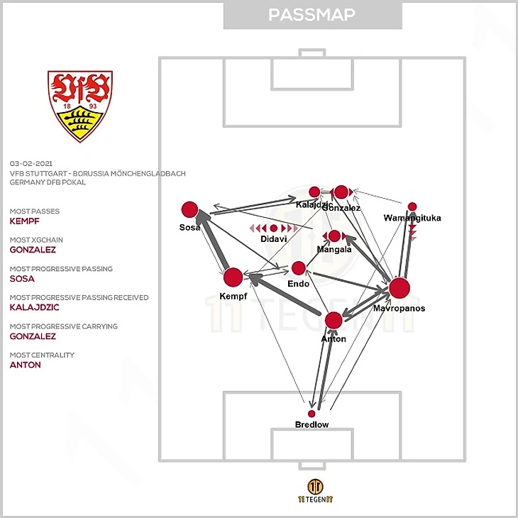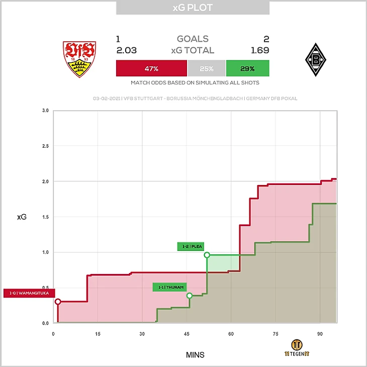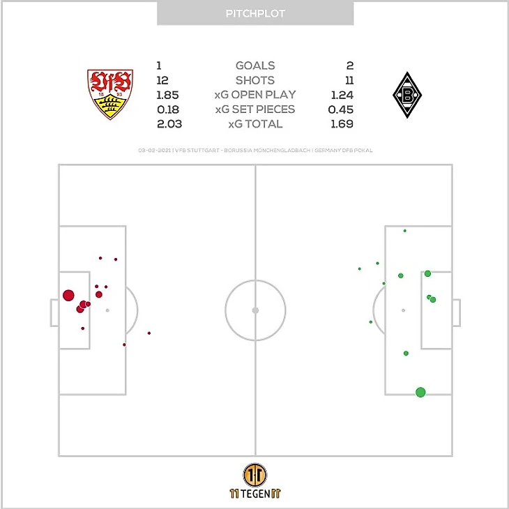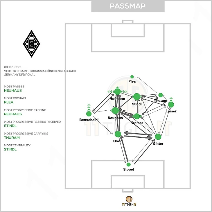 После этого «Штутгарт» отдал мяч гладбахцам, которые начали планомерно расшатывать оборону хозяев, между нами, не такую уж крепкую. В середине Плеа не смог переиграть вратаря, а в добавленное к первой половине время Тюрам нанес красивый удар без шансов для голкипера.