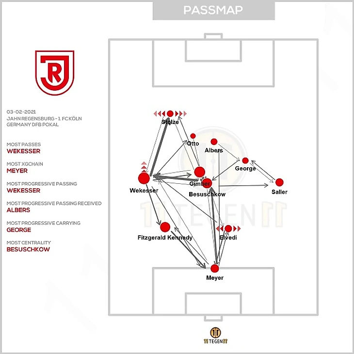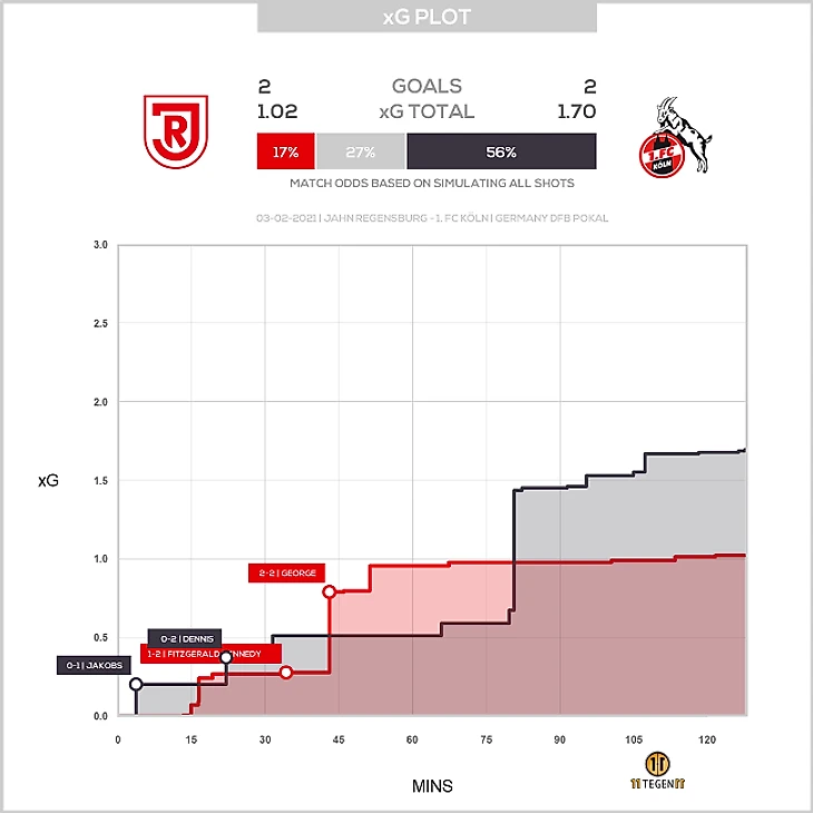 За бесшабашным первым таймом последовал ожидаемо осторожный второй. Тем не менее, «козлы» были близки к победе – за десять минут до конца основного времени все мог решить Эммануэль Деннис, записав себе на счет дубль, но голкипер «Регенсбурга» Александр Мейер не пожелал упускать шанс на четвертьфинал и отразил пенальти нигерийца.