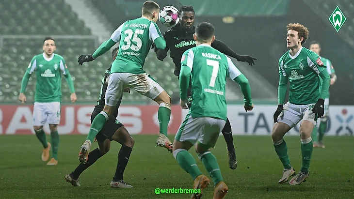 В Бремене местные «музыканты» встречались с очередным представителем второй лиги – «Гройтер Фюртем». После ничьи на выходных против многострадального «Шальке», тренер «Вердера» Флориан Кофельдт переставил игроков на трех позициях. Одной из замен стал Людвиг Аугустинссон на левом фланге, окончательно восстановившийся после травмы. В итоге у Кофельдта получилась стартовая схема 5-3-2 с Романо Шмидом в центре и быстрыми Рашицой и Сарджентом в нападении. Гости из Фюрта ответили расстановкой 4-4-2 с ромбом в полузащите.