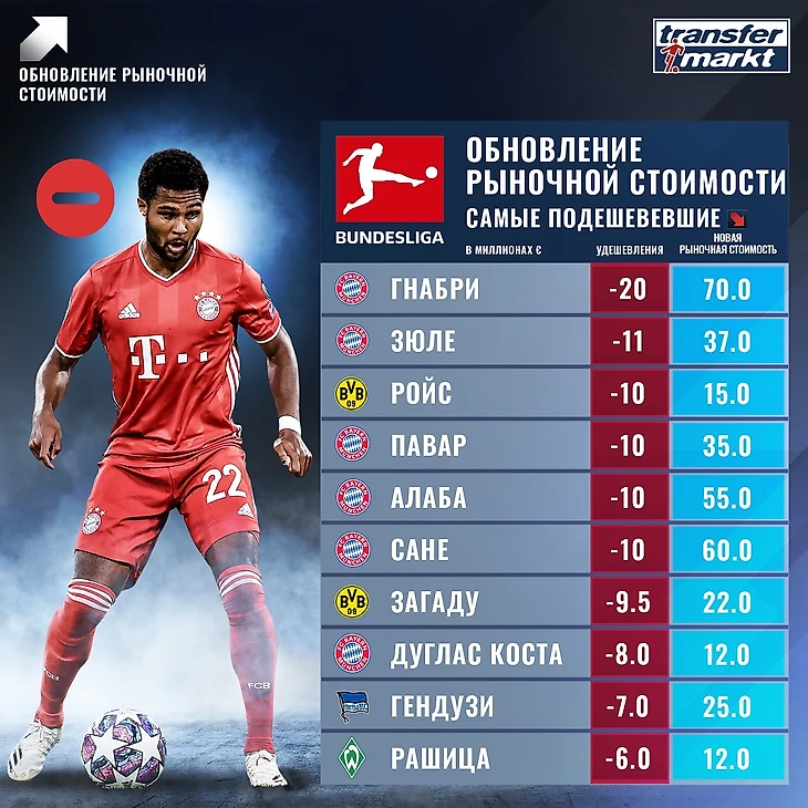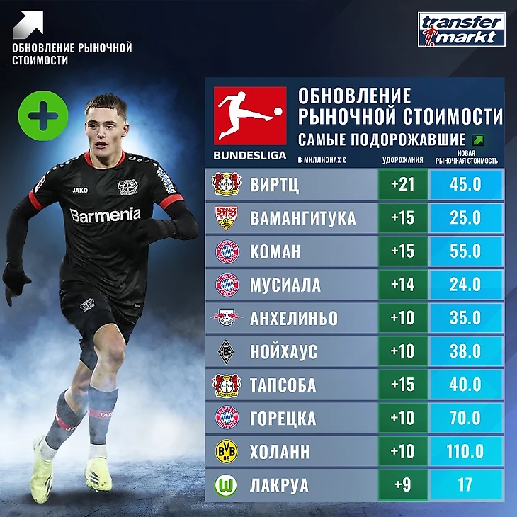 Взлеты и падения. Transfermarkt обновил стоимость игроков Бундеслиги