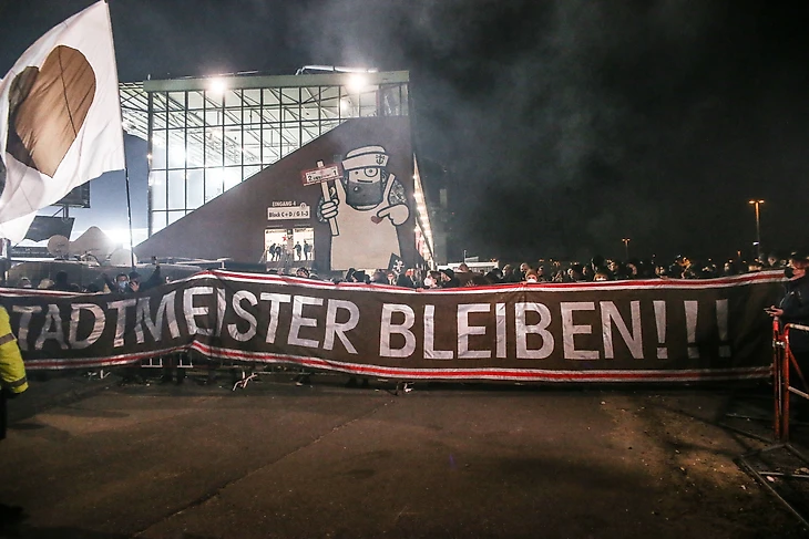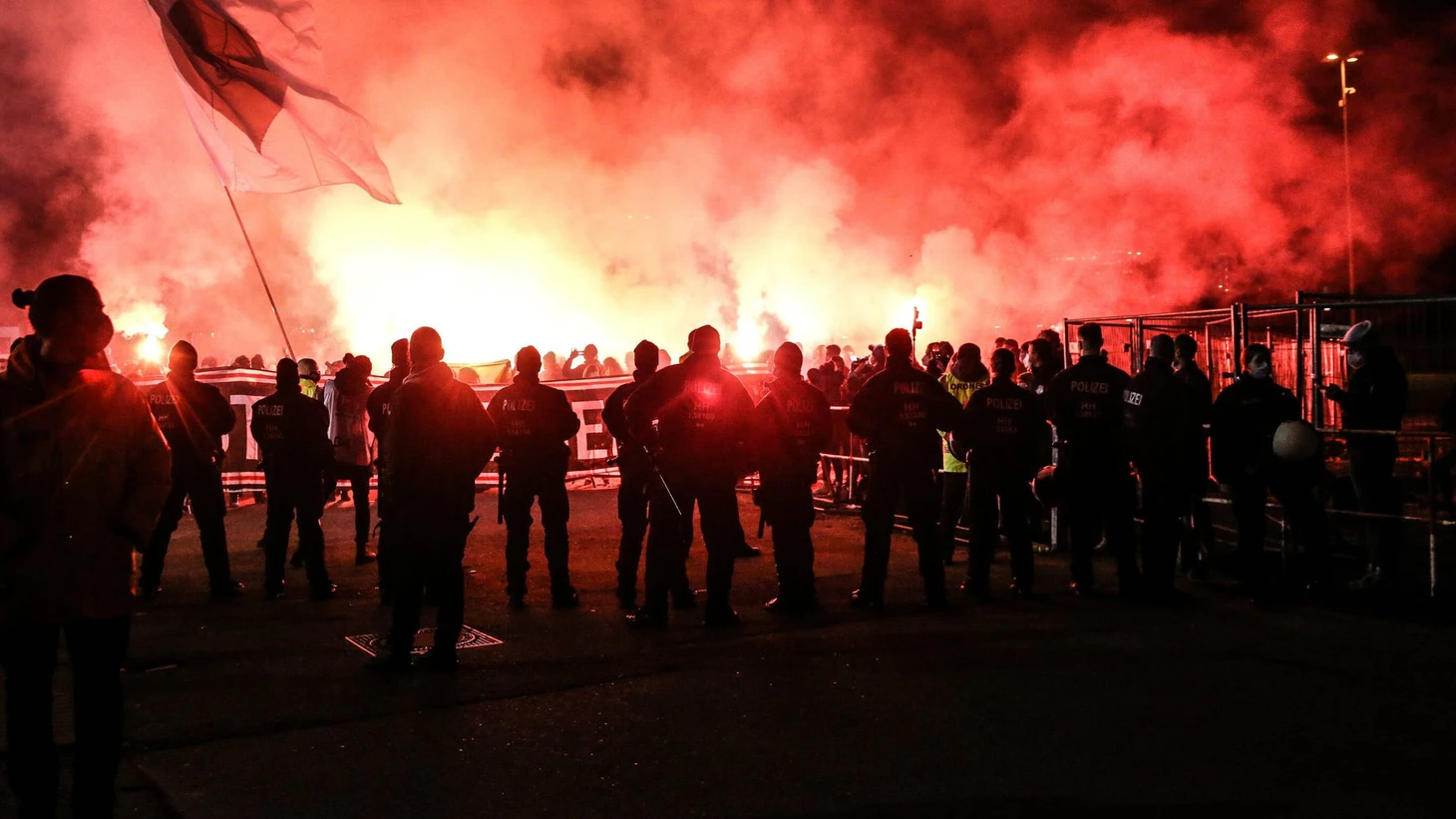 Вечерний матч проходил в логове «пиратов» — на центральном «Миллернтор-штадионе». Стадион находится в самом сердце города, тогда как более крупный стадион «динозавров» расположен немного на отшибе. Обычно гамбургское дерби полностью захватывает город: многочисленные бары и пабы в двух центрах ночной жизни Гамбурга вблизи стадиона были бы до отказа забиты фанатами. Но из-за ковидных ограничений в Германии бары закрыты, как и сам стадион для зрителей. Предвкушая неразрешенные акции фанатов, полиция ожидаемо усилила присутствие в районах вокруг стадиона. Что не помешало большому количеству фанатов организовать шествие к стадиону и устроить целое пиро-шоу.