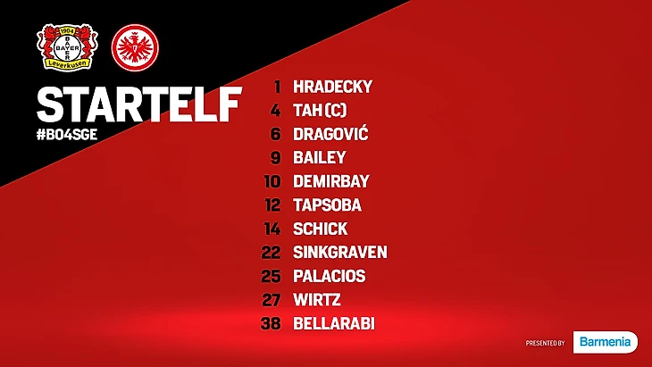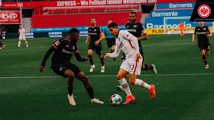 После этого гола «Байер» не расслабился, а Франкфурт не опустил руки. Через десять минут прессинг «орлов» прервала контратака вышедшего на замену Аларио. Он разогнал атаку, возле штрафной гостей принял обратный пас от Бэйли и удвоил преимущество своей команды.