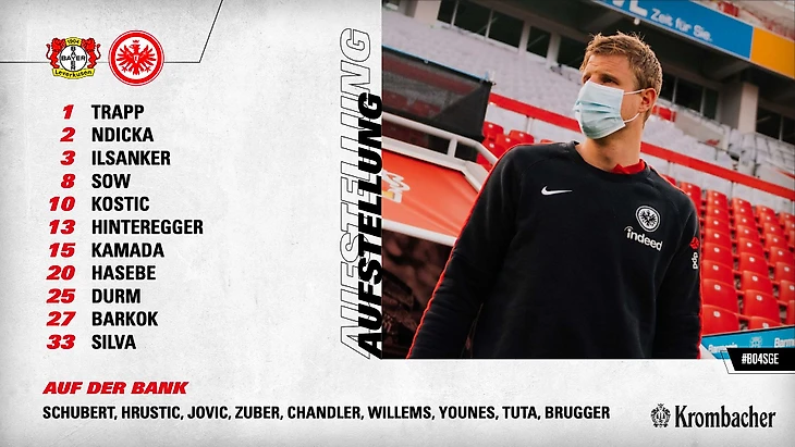 Начало второй половины матча атакующим футболом особо не запомнилось. Команды обменялись моментами: Камада за «орлов» и Бельараби за «аспириновых». Но счёт оставался неизменным – 0:0, хотя «Байер» выглядел более напористым. Спустя 15 минут после начала тайма, «Айнтрахт» проснулся и начал отвечать на моменты хозяев своими. Честно говоря, счёт был не по игре. Обе команды к середине второго тайма наиграли минимум на один гол каждая.