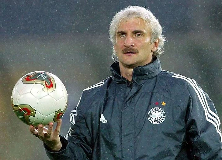 В сборную Руди пришел на время, но из-за кокаиновой истории Кристофа Даума задержался на посту тренера бундестим на четыре года. Самым большим достижением стал ЧМ-2002 — специалисты пророчили провал, но команда дошла до финала. Впрочем, уже следующий крупный турнир Германия на радость специалистам провалила и Феллер покинул свой пост.