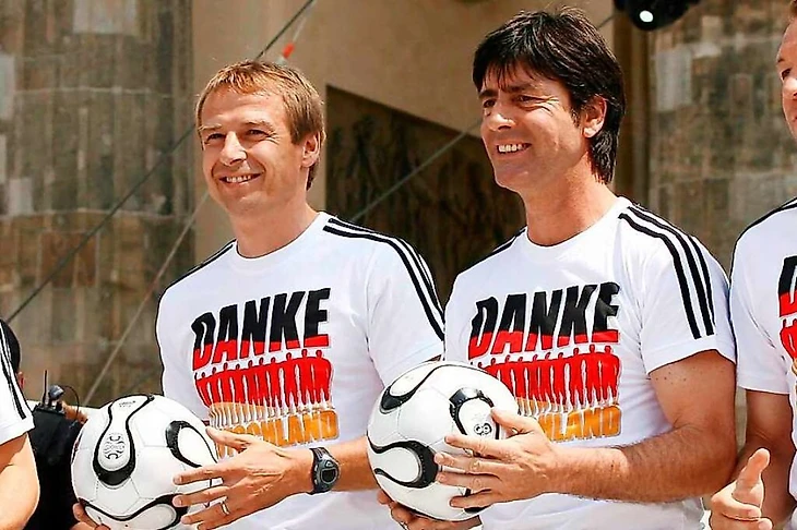 Говорят, что на самом деле при Клинсманне со сборной работал Йоахим Лёв, а Юрген только ходил на пресс-конференции и изображал бурную деятельность. Может быть. Но глобальные обновления в сборной начались именно при Клинсманне. Не все предложения Юргена прошли, например, ему не удалось пропихнуть в команду Берти Фогтса и тренера хоккейной сборной Петерса. Зато он пригласил в сборную новый медицинский и аналитический штаб и не постеснялся избавиться от легенды — уволил Зеппа Майера.