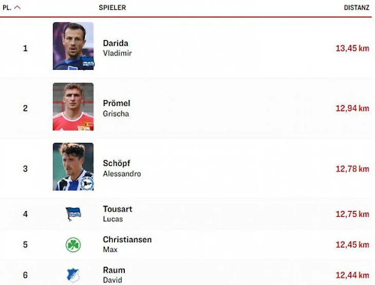 *игрок – кол-во игр – кол-во минут – в среднем км за 90 мин – всего км