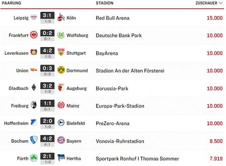Матч двух команд, которые находятся на противоположных полюсах турнирной таблицы на удивление вышел весьма зрелищным. Шесть мячей забили команды на двоих, а ключевые голы были забиты за десять минут до финального свистка главного арбитра матча Феликса Брыха. Футбольная атмосфера тоже постепенно возвращается на немецкие стадионы. На этот матч разрешили прийти 10 000 болельщиков. Уже неплохо – это почти треть от максимальной вместимости «БайАрены».