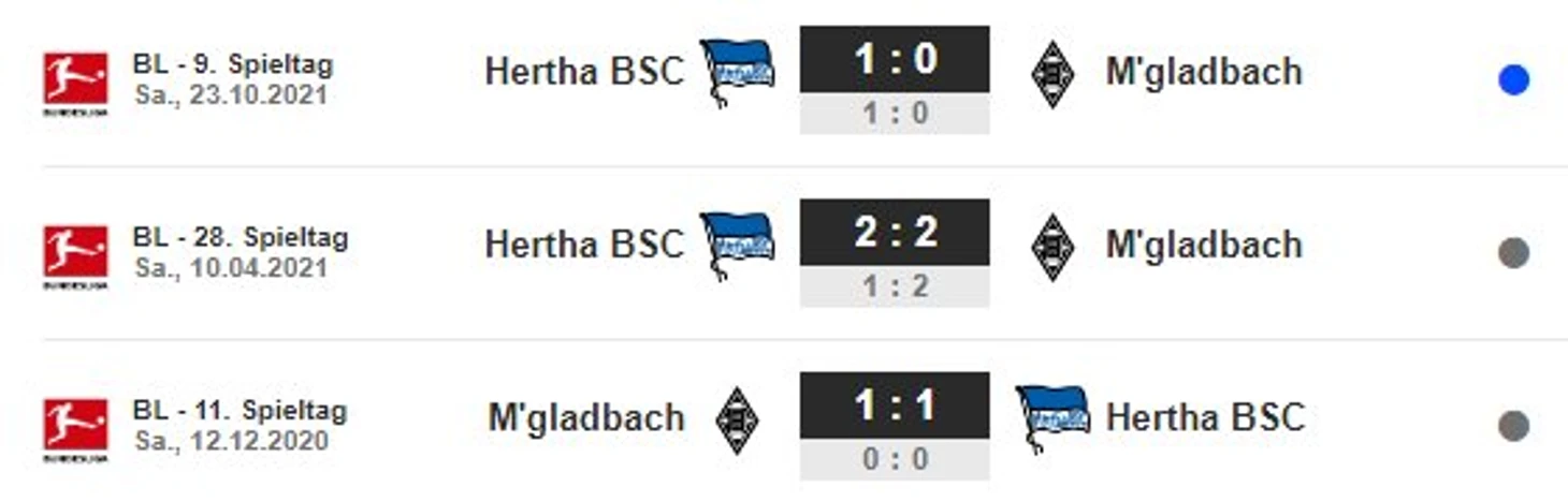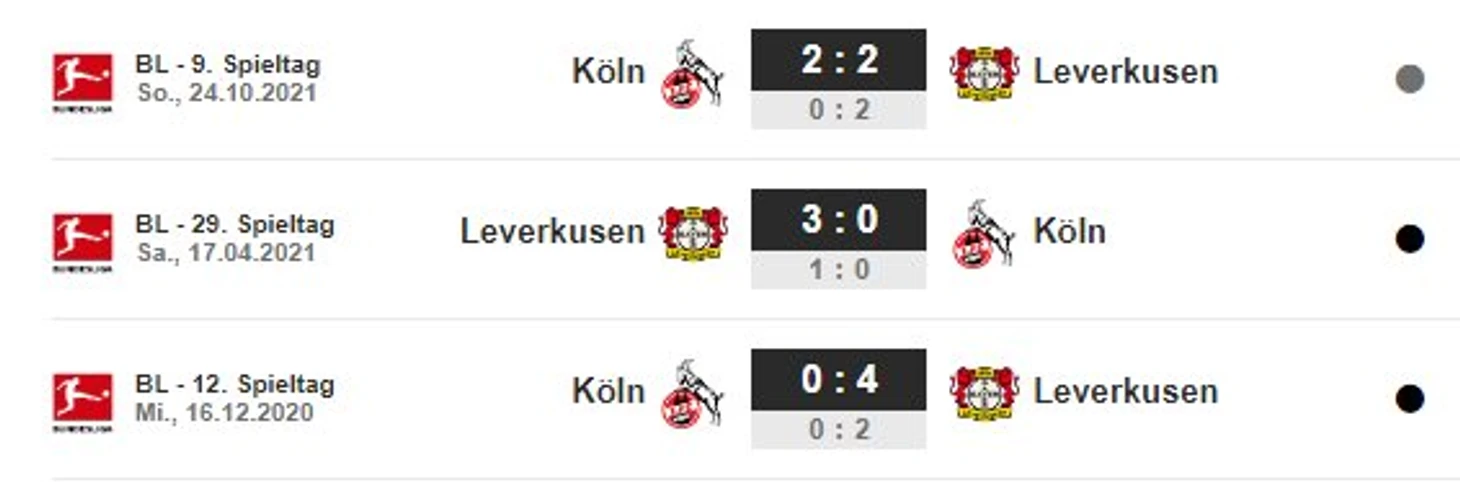Последние очные встречи (здесь и далее fussballdaten.de)