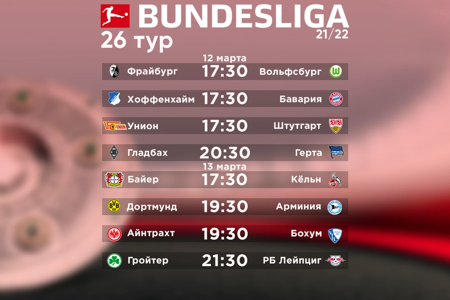 В субботу стартует 26-й тур немецкой Бундеслиги. Сможет ли «Хоффенхайм» отнять очки у «Баварии», чем закончится противостояние Гладбаха и «Герты», продлит ли «Лейпцига» свою серию? Скоро узнаем это и многое другое.