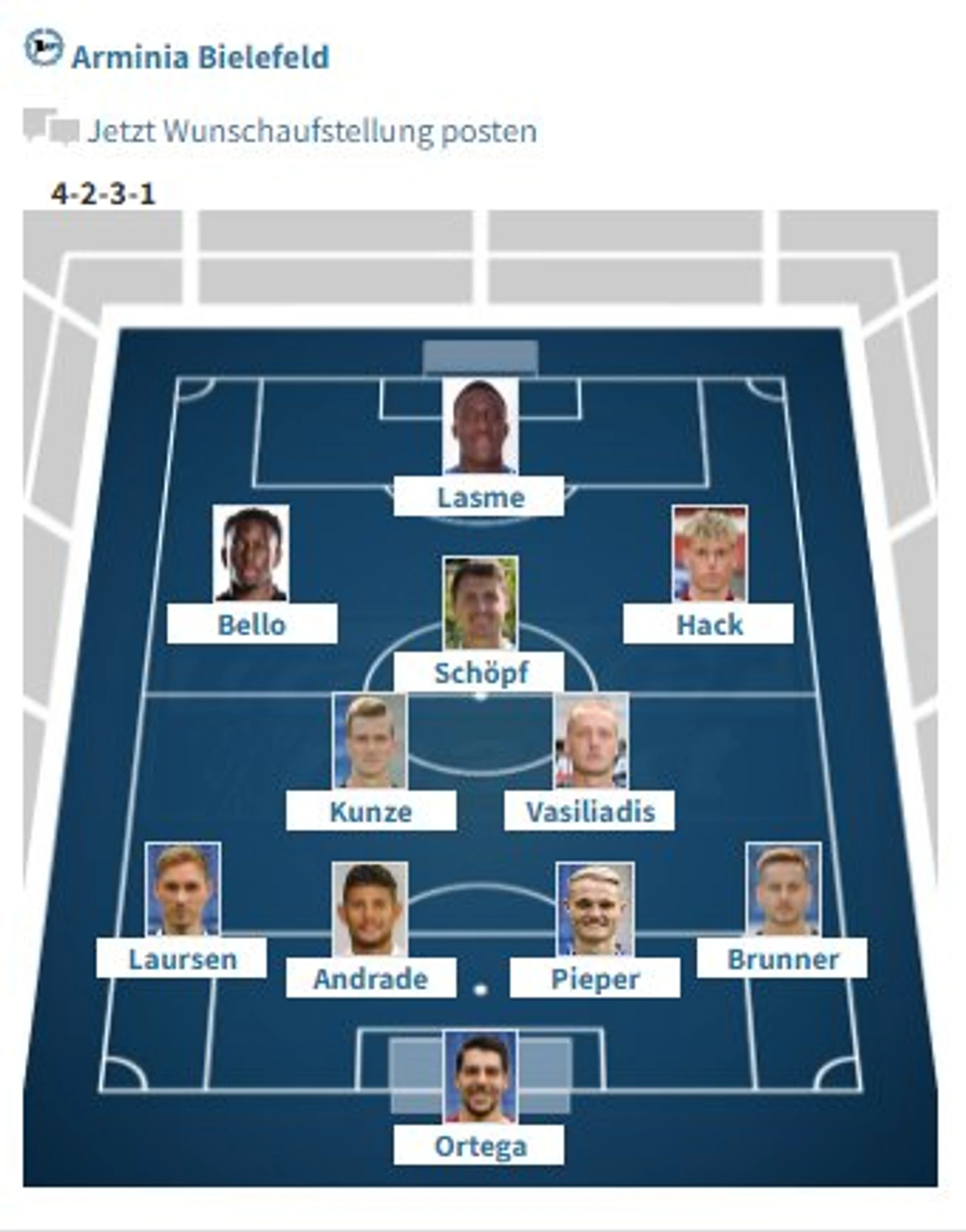 «Арминия»: Ortega - Brunner, Pieper, Andrade, Laursen - Kunze, Vasiliadis - Wimmer, Schöpf, Okugawa - Serra