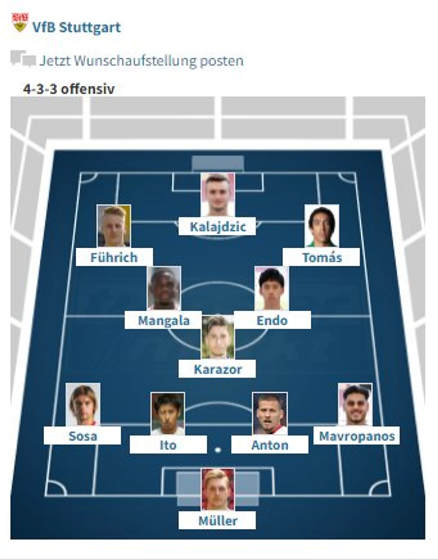 «Штутгарт»: Müller – Mavropanos, Anton, Ito, Sosa – Karazor - Endo, Mangala - Tomas, Marmoush - Kalajdzic