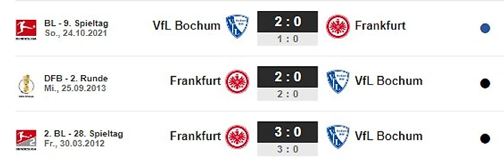 Воссоединение спустя долгое время: «Айнтрахт» выиграл все четыре последних обязательных домашних матча против «Бохума», но прошло много времени с тех пор, как два традиционных клуба в последний раз встречались во Франкфурте. В сентябре 2013 года «орлы» победили рурский клуб со счетом 2:0 в Кубке Германии.
