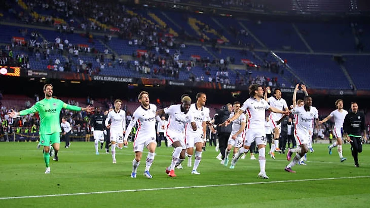 Трапп, Костич, Ндика, Хинтереггер, Туре (90+9’ Хасебе), Кнауфф (90+9’ Чендлер), Якич, Роде (80’ Хрустич), Камада, Линдстрем (80’ Хауге), Борре (90’ Ахе)