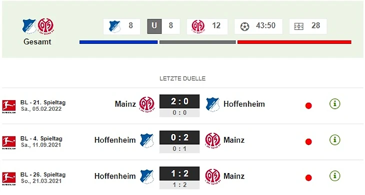 За последние восемь игр "Майнц" только однажды уступил "Хоффенхайму" (в 2020 году). Три предыдущих игр в Зинсхайме остались за "карнавальщиками"