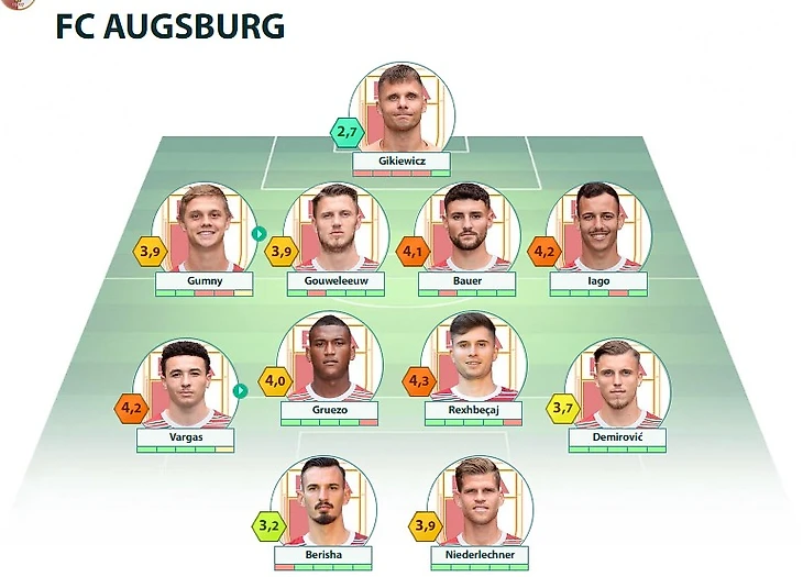 Бериша (два гола, две передачи) и Флориан Нидерлехнер (два гола, одна передача) участвовали во всех семи голах «Аугсбурга» в предыдущих четырех матчах чемпионата;