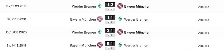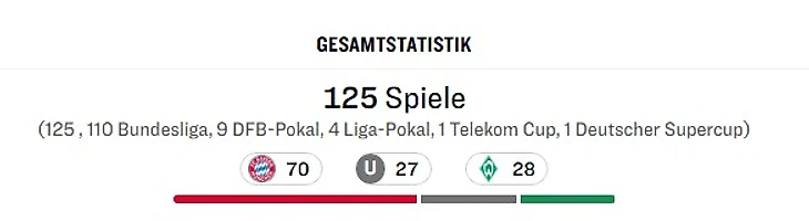 «Вердер» провел 25 матчей с момента последней победы над «Баварией» (4 ничьих, 21 поражение) в высшем дивизионе – с игры со счетом 5:2 на «Альянц Арене» в сентябре 2008 года.