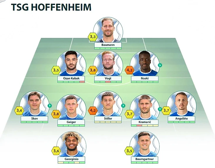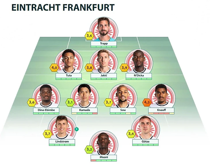 Даббур – лучший бомбардир TSG в сезоне-2022/23 (четыре гола). Игроки «Айнтрахта» Линдстрем и Камада занимают пятое и седьмое места соответственно;