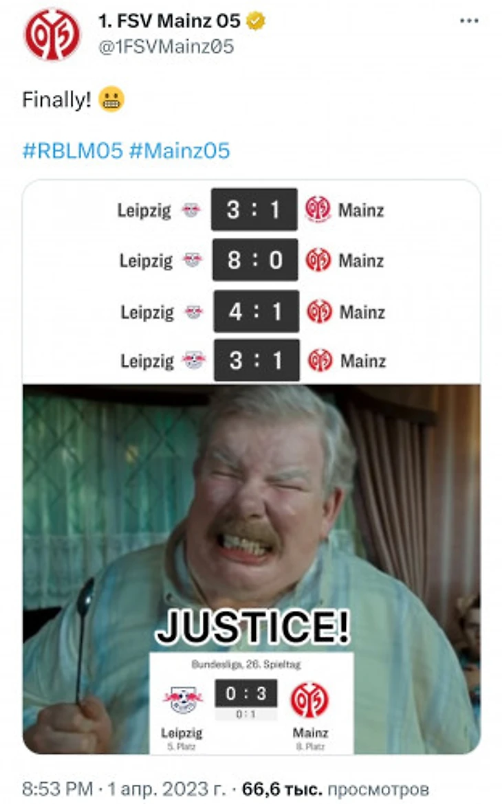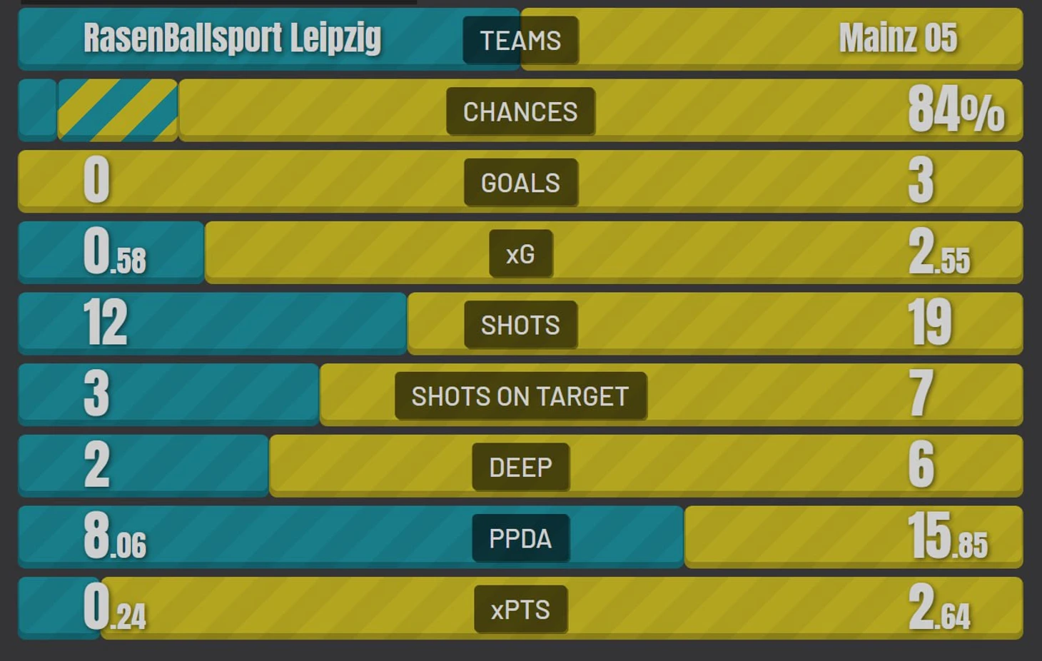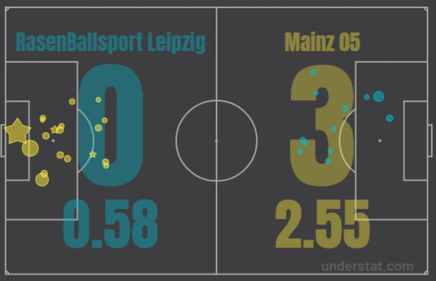 • «Майнц» впервые выиграл на выезде у «РБ Лейпцига» после одной ничьей и пяти поражений в предыдущих встречах.